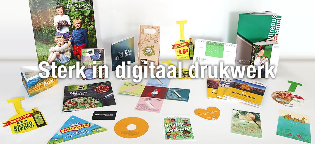 Affiches, leaflets, brochures, naamkaartjes, tickets, stickers, naambadges, uitnodigingen, wire-o boeken, personalisaties, mailings, manuele handling, menukaarten, roll-up banners etc.