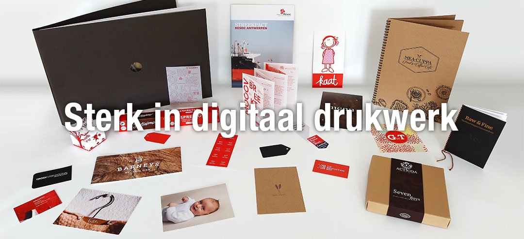 Affiches, leaflets, brochures, naamkaartjes, tickets, stickers, naambadges, uitnodigingen, wire-o boeken, personalisaties, mailings, manuele handling, menukaarten, roll-up banners etc.